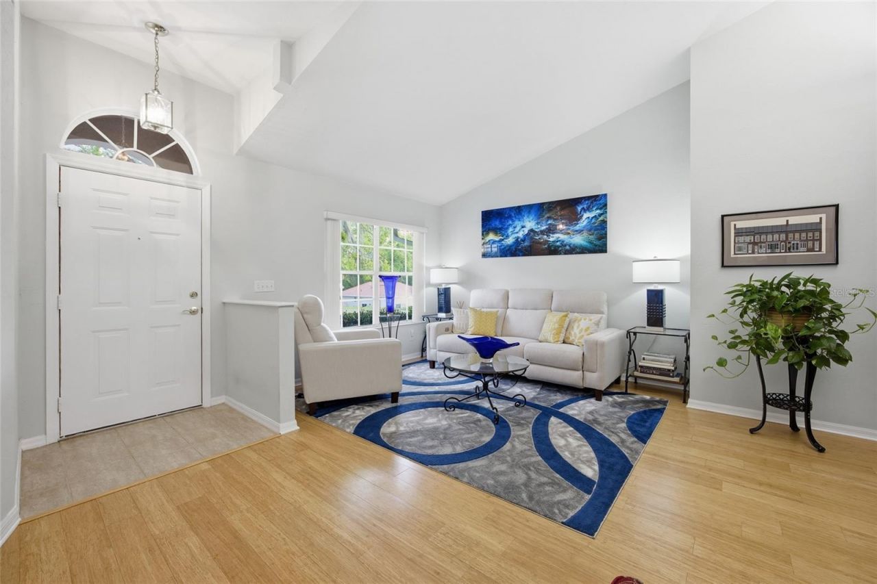 Welcome to Broadmoor and this well-maintained 3BR/2BA home featuring an open floorplan with a bright, airy feel. New bamboo floors (2023)throughout the common areas and carpeting in the bedrooms. The spacious primary suite offers a walk-in closet, dual sinks and a separate water closet. The family room includes built-in features and opens to an enclosed sunroom for year-round enjoyment. The kitchen features all newappliances (2023) and a large walk-in pantry.Recent updates include roof (11/2021), HVAC (8/2022), water heater (9/2022), garage door opener (2023), and a $10,000 RainSoft whole house water treatment system (2023). This home is situated on an oversized corner lot with mature Florida landscaping.Low HOA with access to community pool and green space. Convenient location near I-75, shopping, dining and North Florida Regional Hospital. Schedule your showing today.
